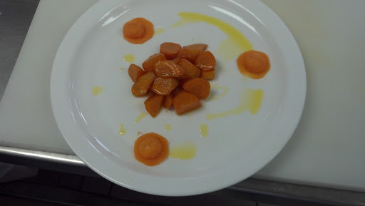 - Cenoura Glaceada com Mel e Açucar. Pouco dos doces e cenoura cortada em oblique com palito de dente.