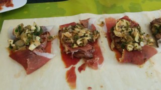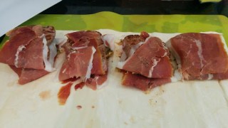 - Coloque os cogumelos sobre o presunto (irá sobrar cogumelo. Utilize na finalização).