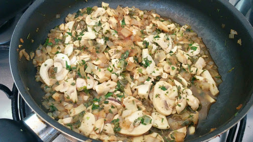- Adicione o cogumelo e aumente o fogo, deixe até o cogumelo ficar levemente tenro e desligue o fogo
