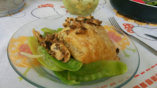 - Coloque os cogumelos sobre o presunto (irá sobrar cogumelo. Utilize na finalização).
