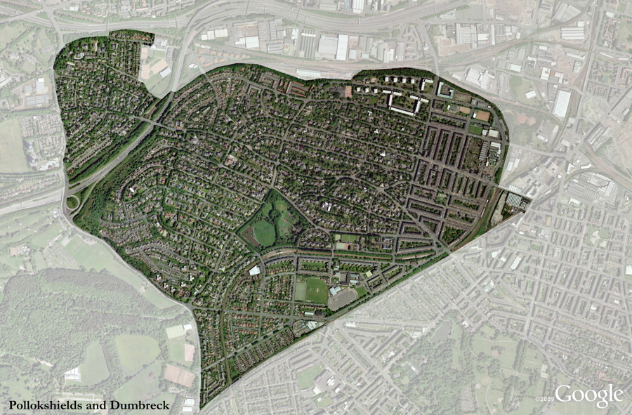 Pollockshields atualmente é um distrito localizado na região sul da Cidade de Glasgow. Originalmente era uma vila independente que virou burgo e 1891 foi convidada a fazer parte da cidade de Glasgow. Veja mais na Wikipedia.